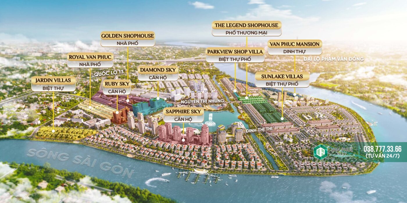 Từ bao đời nay, sông Sài Gòn đã là tuyến giao thông huyết mạch, giữ dấu ấn quan trọng trong văn hóa Sài Gòn – Gia Định. Và nay, Sài Gòn là một chứng nhân cho sự phát triển phồn vinh với hàng loạt công trình ven sông – niềm tự hào của thành phố. Được sông Sài Gòn ôm trọn 3 mặt, khu đô thị Vạn Phúc đã kiến tạo nên những không gian sống đẳng cấp, những tiện nghi hoàn hảo, làm nên những giá trị mới cho dòng sông lịch sử mà không hề mất đi sự huyền ảo vốn có. KHU ĐÔ THỊ VẠN PHÚC được tự hào là dự án đất nền nhà phố có quy mô lớn thứ hai Sài Gòn với diện tích 198 Ha, nằm trọn vẹn trên bán đảo tuyệt đẹp được ba mặt sông Sài Gòn ôm ấp, uốn lượn, nơi an cư lạc nghiệp cho khoảng 45.000 cư dân. Vạn Phúc City từ trên cao nhìn xuống tựa như một lá phổi xanh khổng lồ, tỏa sáng cả vùng trời Thủ Đức.