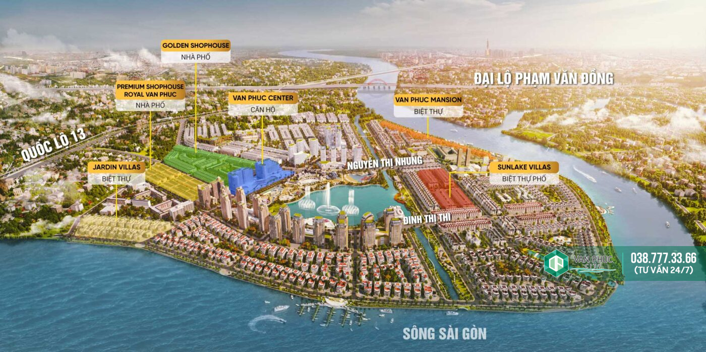 KHU ĐÔ THỊ VẠN PHÚC được tự hào là dự án đất nền nhà phố có quy mô lớn thứ hai Sài Gòn với diện tích 198 Ha, nằm trọn vẹn trên bán đảo tuyệt đẹp được ba mặt sông Sài Gòn ôm ấp, uốn lượn, nơi an cư lạc nghiệp cho khoảng 45.000 cư dân. Vạn Phúc City từ trên cao nhìn xuống tựa như một lá phổi xanh khổng lồ, tỏa sáng cả vùng trời Thủ Đức.